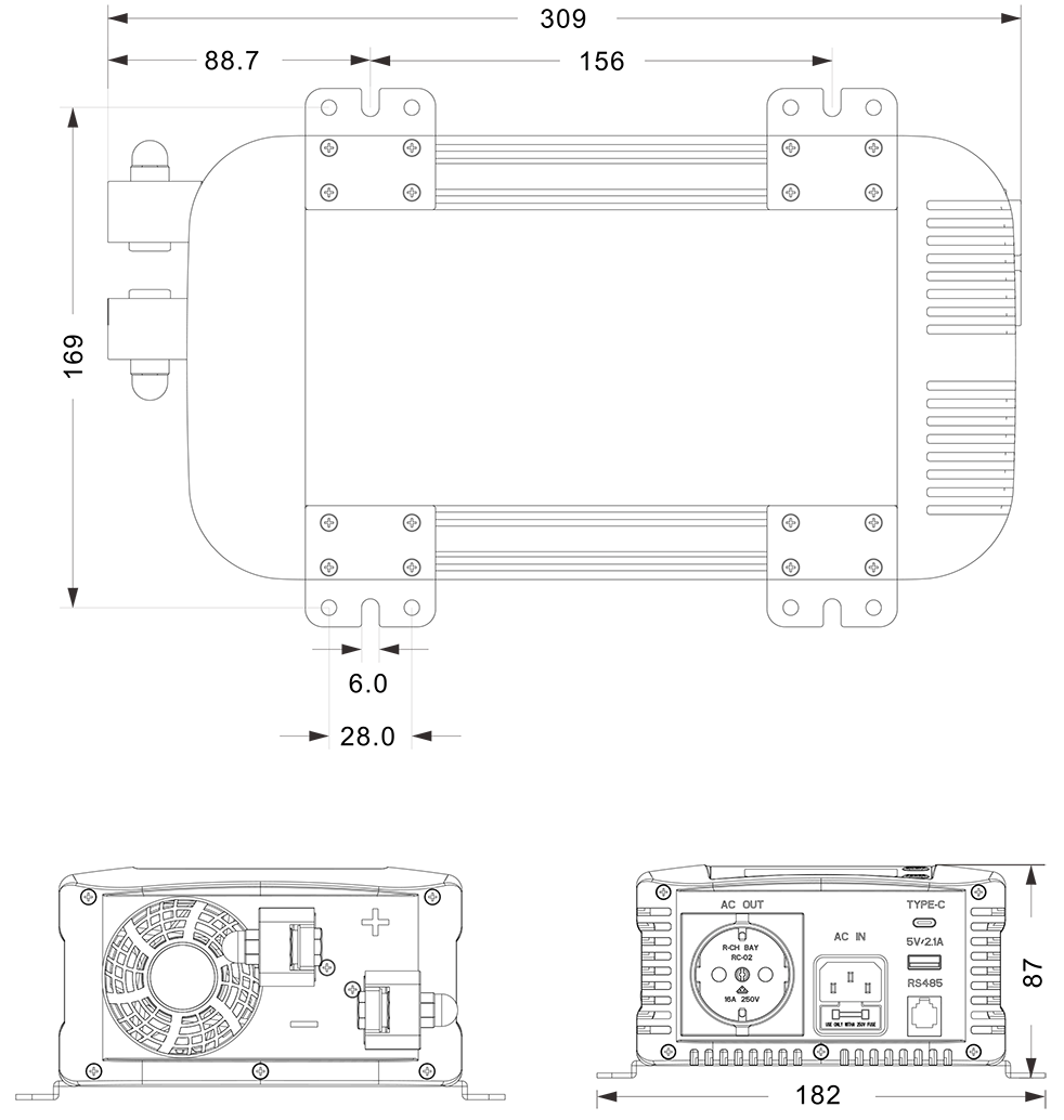 Dessins mécaniques :(309x182x87 mm)