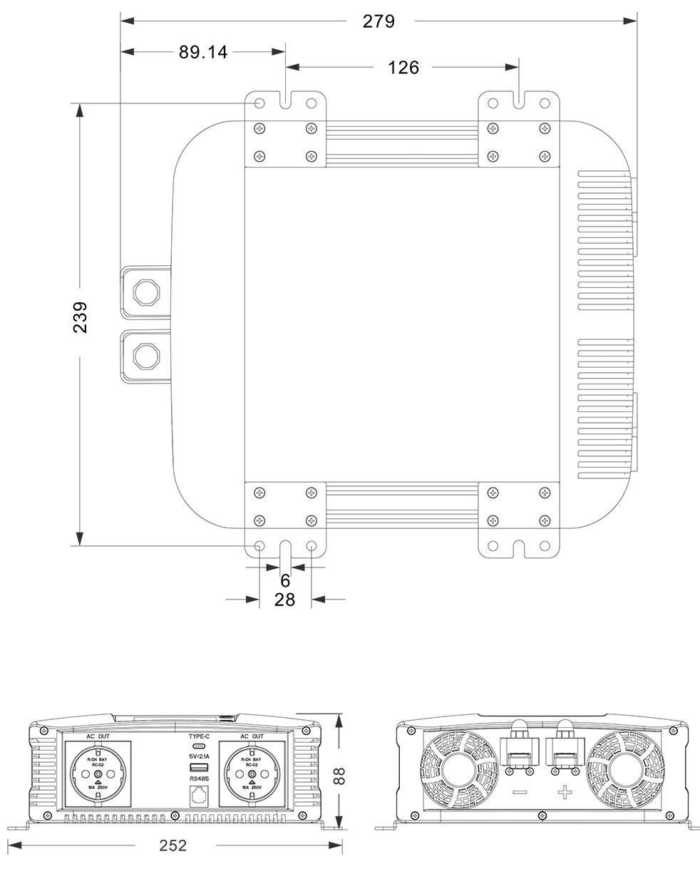 Dessins mécaniques :(279x252x88mm)
