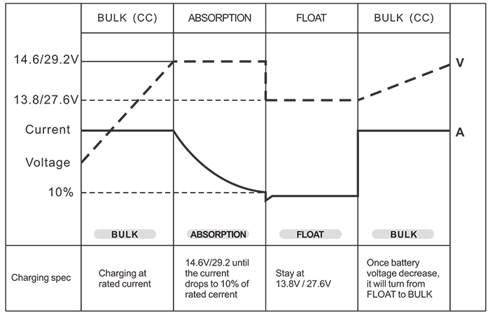 Contrôle de la batterie (chargeurs de batterie à 3 niveaux) Vrac/Absorption/Flotteur