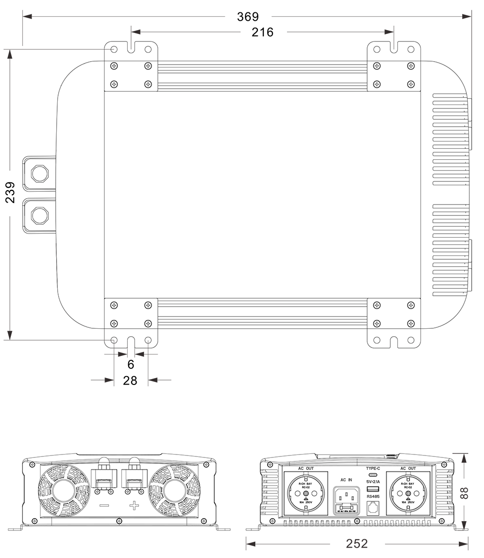 Dessins mécaniques :(369x252x88mm mm)
