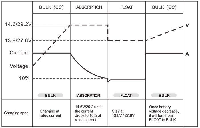 Contrôle de la batterie (chargeurs de batterie à 3 niveaux) Vrac/Absorption/Flotteur