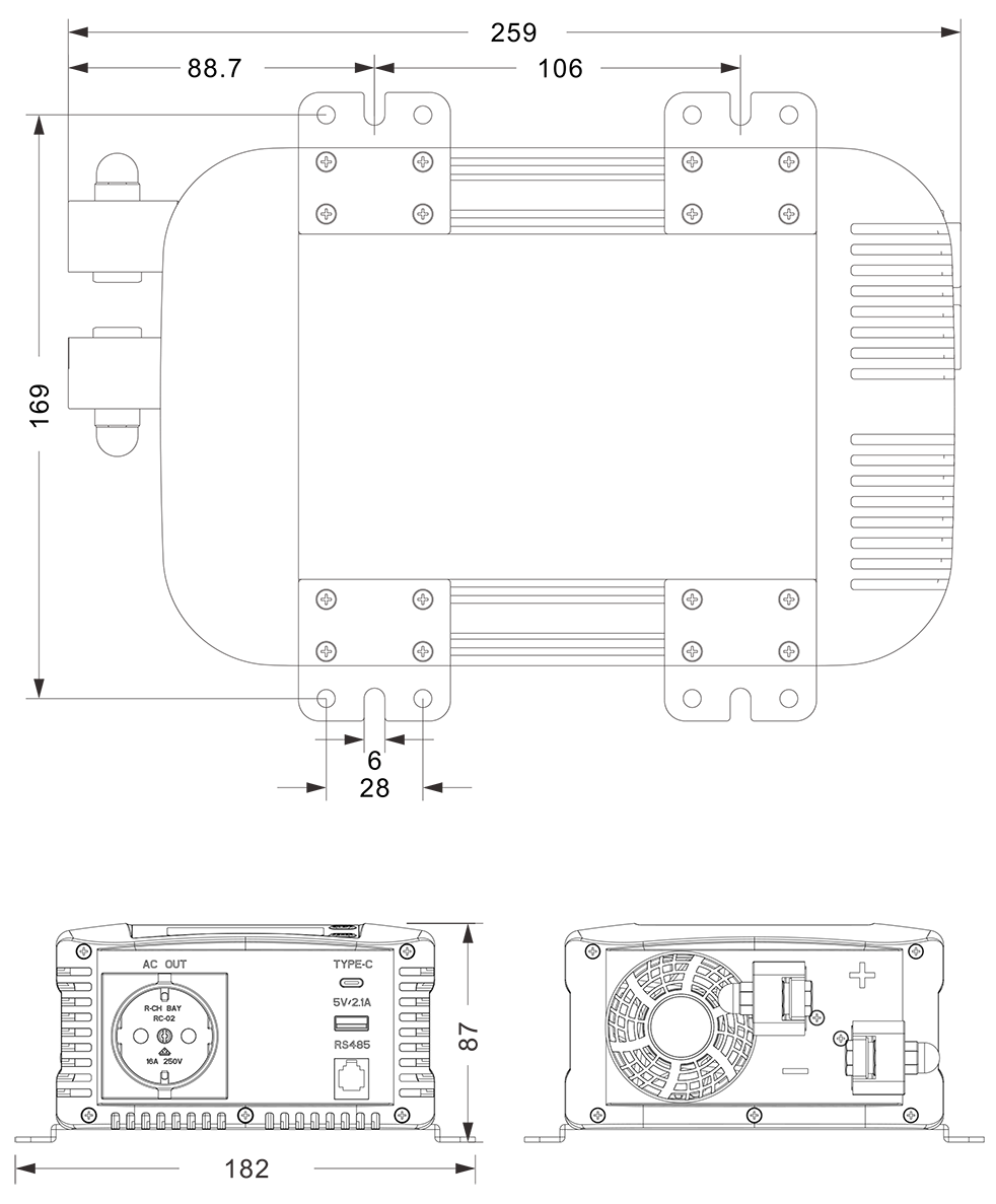 Dessins mécaniques :(259x182x87mm)