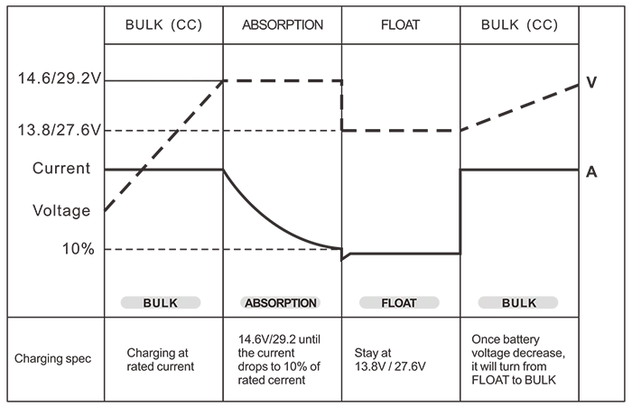 Contrôle de la batterie (chargeurs de batterie à 3 niveaux) Vrac/Absorption/Flotteur